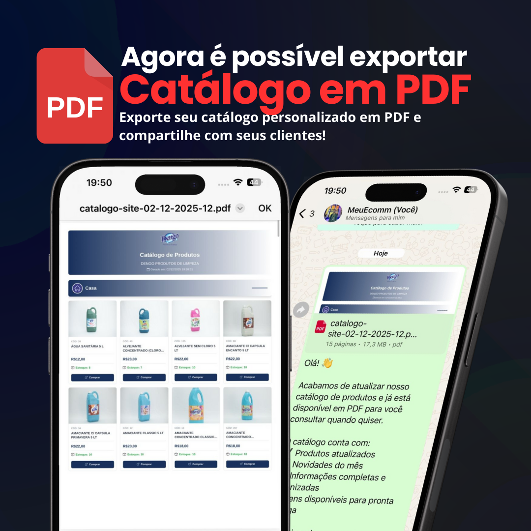 O MeuEcomm está sempre inovando para facilitar a vida de seus usuários, e a mais recente novidade promete revolucionar a forma como você compartilha informações sobre seus produtos. Agora, é possível exportar catálogos personalizados em PDF, incorporando elementos que refletem a identidade do seu negócio de forma prática e eficiente.